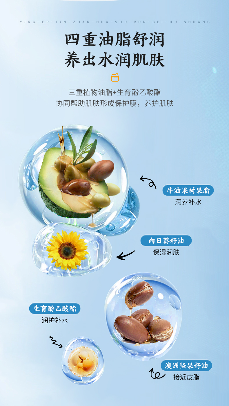 功效:甄選泛醇、金盞花花提取物等多種成分,細(xì)膩盈潤(rùn),一抹即開(kāi)保濕肌膚,呵護(hù)寶寶柔嫩肌膚。