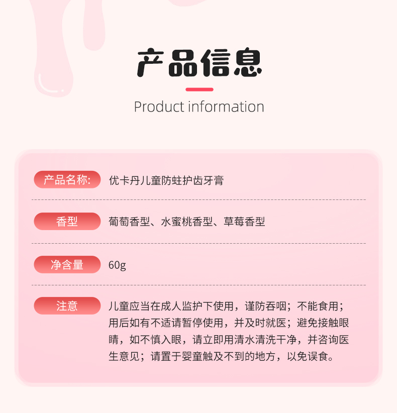 【產(chǎn)品名稱】?jī)?yōu)卡丹兒童防蛀護(hù)齒牙膏