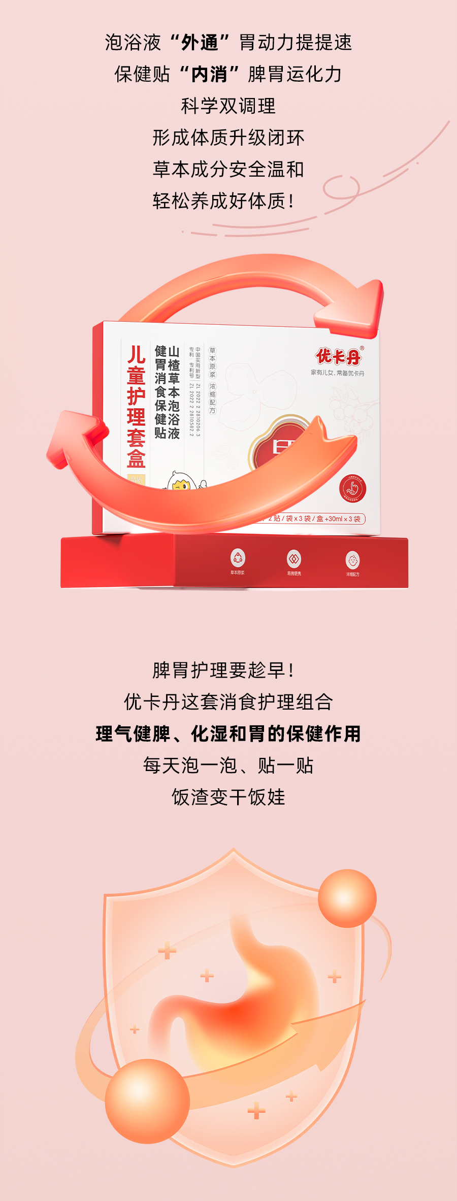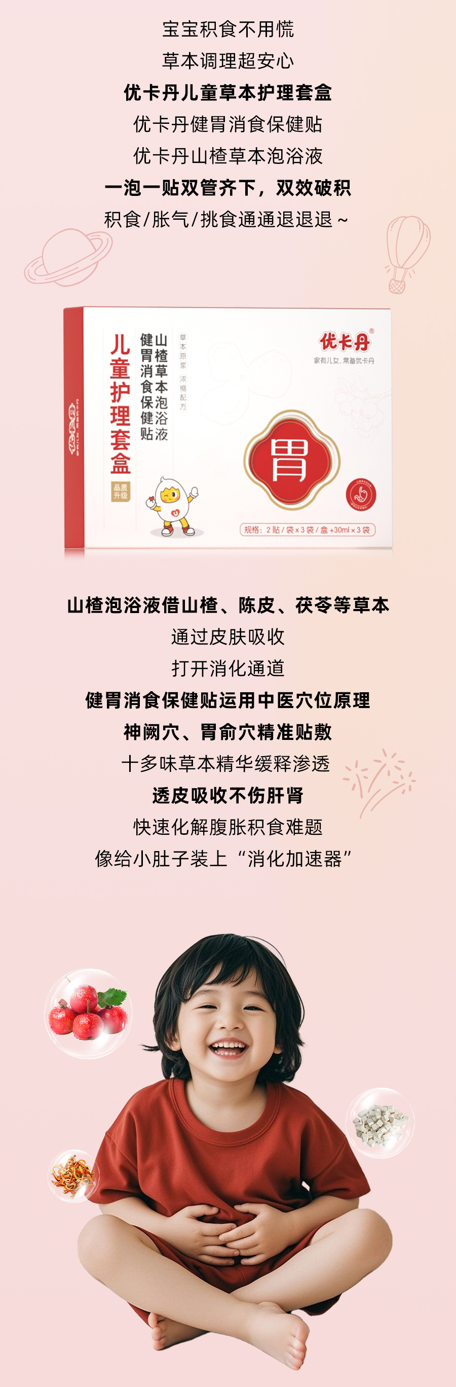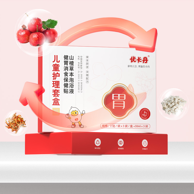 【產品名稱】優卡丹兒童草本健胃消食護理套盒(健胃消食保健貼、山楂草本泡浴液)