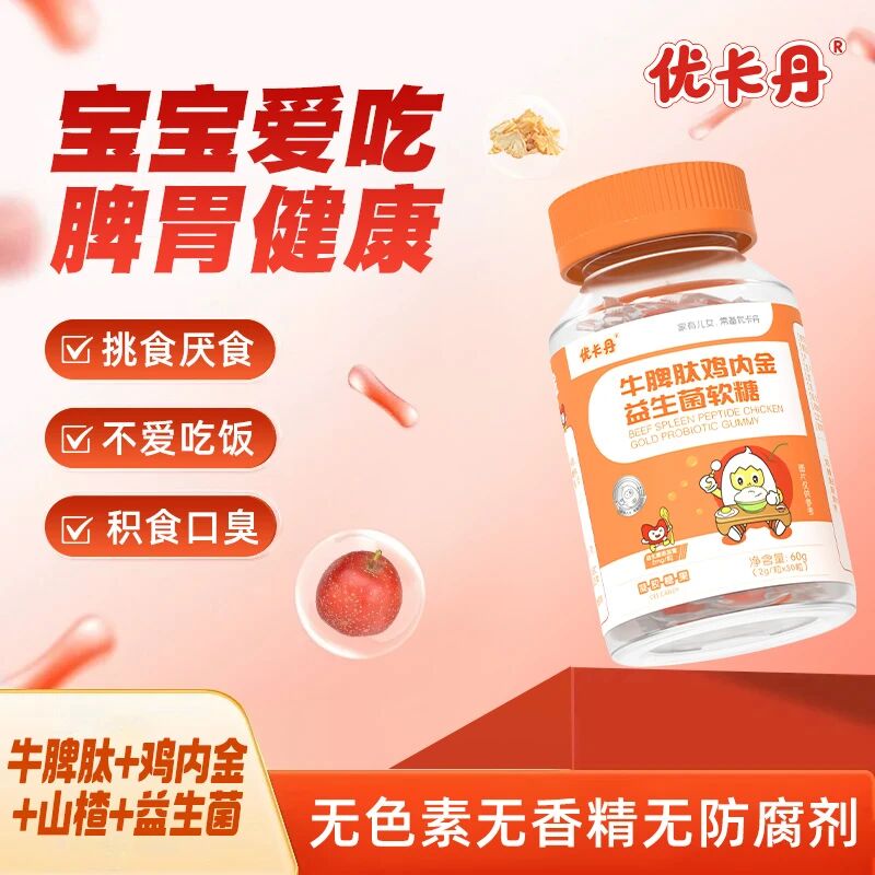優卡丹牛脾肽雞內金益生菌軟糖|消化吸收雙管齊下,長高長壯底氣足!